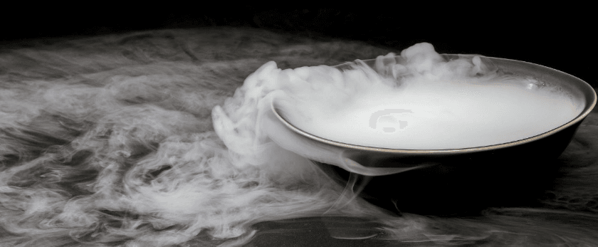 Placing dry ice into a container with warm water speeds sublimation dramatically as heat transfer increases. It’s important to use warm, not boiling water, to prevent hazards such as splattering or container breakage.